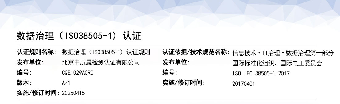 數(shù)據(jù)治理(ISO38505-1) 認(rèn)證